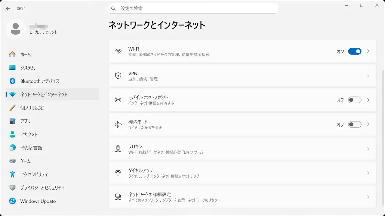 設定のネットワークとインターネットよりネットワークの詳細設定をクリックします。