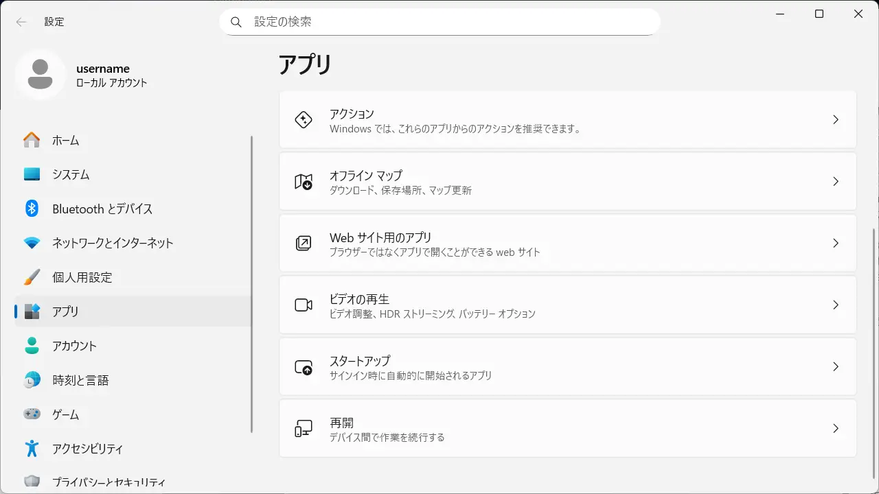 設定のアプリよりスタートアップをクリックします。