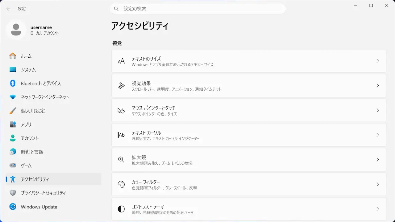 Windows 11のカラーフィルターはキーボードの田+Ctrl+Cキーの押下によってオン/オフが切り替わるようになっています。