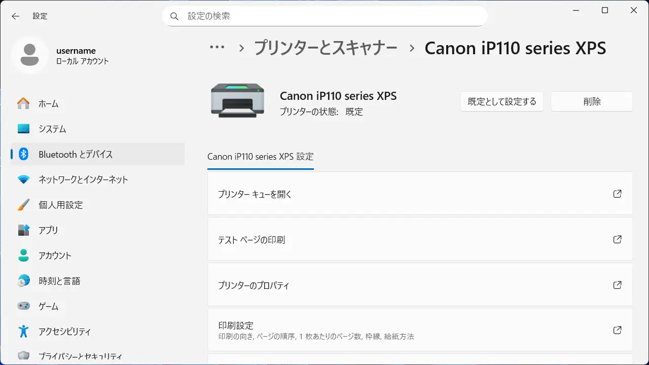 設定のBluetoothとデバイスよりプリンターとスキャナーをクリックします。