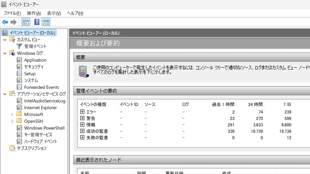 この際に使用するツール(ソフトウェア)をイベントビューアーと呼び、イベントの閲覧はもちろんのこと不要なイベントの削除などを行うことができるようになっています。