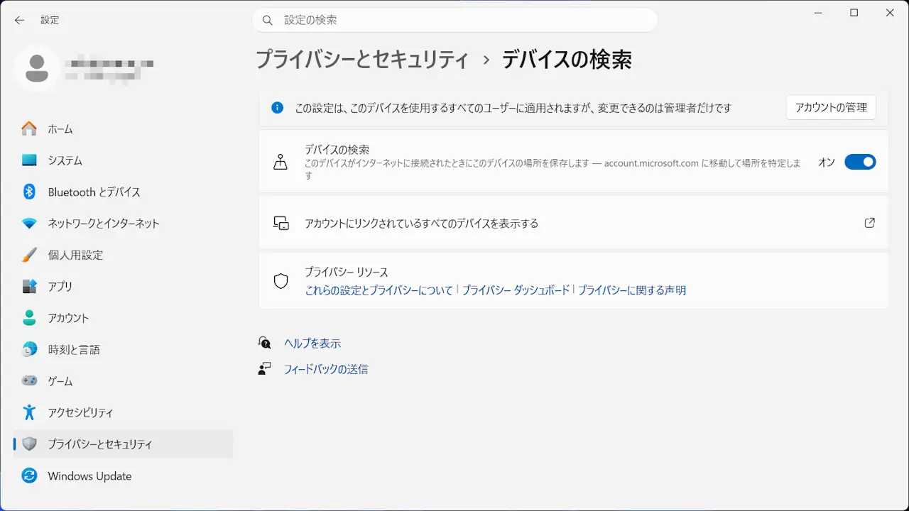 MicrosoftアカウントでサインインしているWindows 11のパソコンでは、別デバイスから検索機能を使って現在の位置を確認できます。ただし、事前に【位置情報サービス】と【デバイスの検索】をオンにする必要があります。
