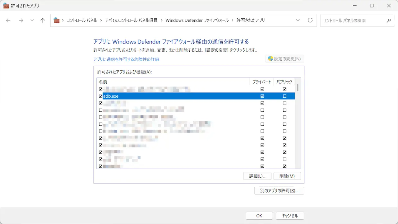 Windows DefenderファイアウォールのアプリにWindows Defenderファイアウォール経由の通信を許可するを変更しOKをクリックします。