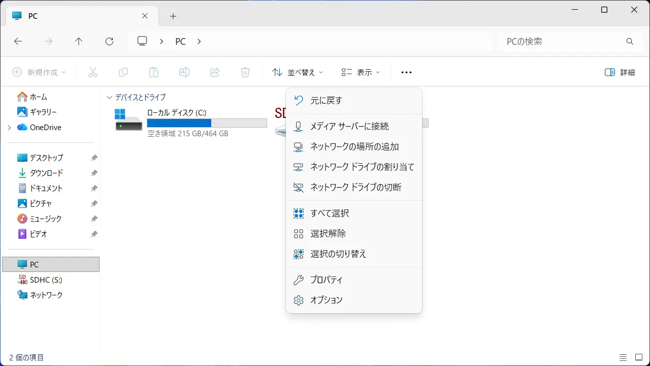 Windows 11→エクスプローラー→ツールバー→メニュー