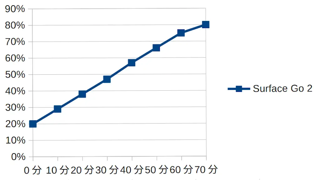 バッテリーの残量が20%の状態から充電を開始し、80%になるまでの時間を計測してみました。