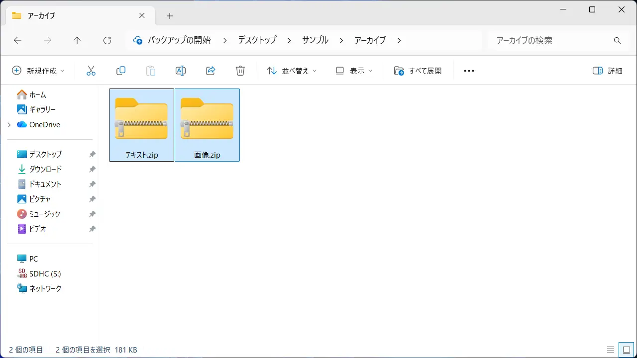 表示されていない場合、キーボードのCtrl+Aキーを押下して〇個の項目を選択を確認します。