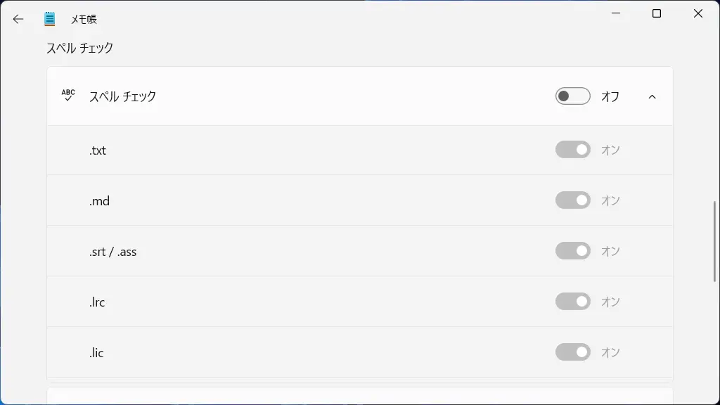 加えて自動修正の機能も追加されており、これらはメモ帳の設定よりオン/オフが切り替えられます。