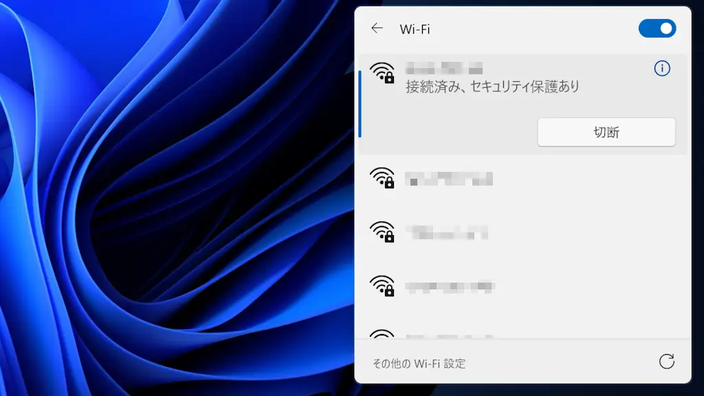 Windows 11ではWi-Fiに一度でも接続すると接続した接続情報(アクセスポイント)が保存され自動接続することが多いですが、フリーWi-Fiスポットなど自動接続したくない場合は、これをオフ(無効)にすることもできます。