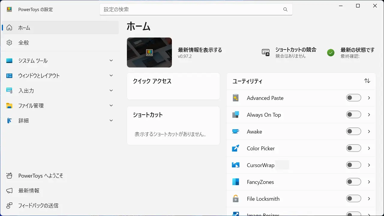 クイック設定のより>をクリックします。