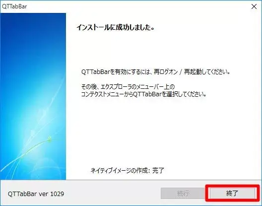 インストールが完了したらQTTabBarを有効にするために再ログイン(再起動でも可)を行います。